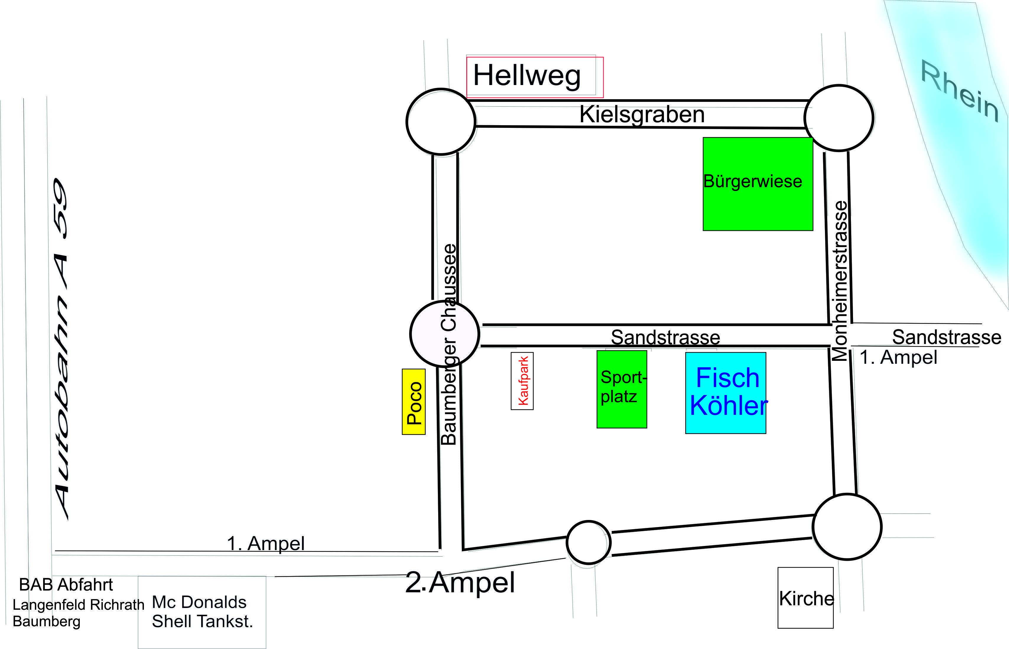 Von der Autobahn A 59 fahren Sie die Abfahrt Nr.:24 Langenfeld-Richrath / Monheim-Baumberg ab. An der Ampel fahren Sie in Richtung Baumberg bis zur 2. Ampel. Folgen Sie der abknickenden Vorfahrt nach links . In ca 300 m kommen Sie in einen Kreisverkehr, bitte nehmen Sie die erste Ausfahrt nach rechts und folgen Sie der Strasse. An der Zweiteilung der Strasse mehmen Sie die rechte Spur . Nach ca 80 m vereinigt sich die Strasse wieder. Jetzt sind es nur noch 60 m bis Sie auf der rechten Seite die grosse Einfahrt nehmen. Fahren Sie ruhig hinein, denn wir haben auf unserem Gelände genügend Parkplätze. Oder : An dieser Ampel fahren Sie rechts, in Richtung Baumberg,nach 200 m kommen Sie in einen Kreisverkehr , im Kreisverkehr nehmen Sie die 2 . Ausfahrt und am nächsten Kreisverkehr die 3. Ausfahrt richtung Monheim. An der nächsten Ampel links in die Sandstraße.Nach ca. 200 m sehen Sie links unsere große Einfahrt. Fahren Sie ruhig hinein, denn wir haben auf unserem Gelände genügend Parkplätze. LKW Zufahrt ab 3,5 t zul. Ges.Gew.: Folgen Sie der abknickenden Vorfahrt nach links . In ca 300 m kommen Sie in einen Kreisverkehr, bitte nehmen Sie die 2. Ausfahrt geradeaus und folgen Sie der Strasse bis in den nächtsen Kreiverkehr. 1 Ausfahrt nach rechts . Nach ca 800 m im nächsten Kreisverkehr wider 1. Ausfahrt rechts und bis zur Ampel. Da wieder rechts . Noch 200 m auf der linken Seite . | ||||||||||||||||||||||||||||||||||||||||||||||||||||||||||||||||